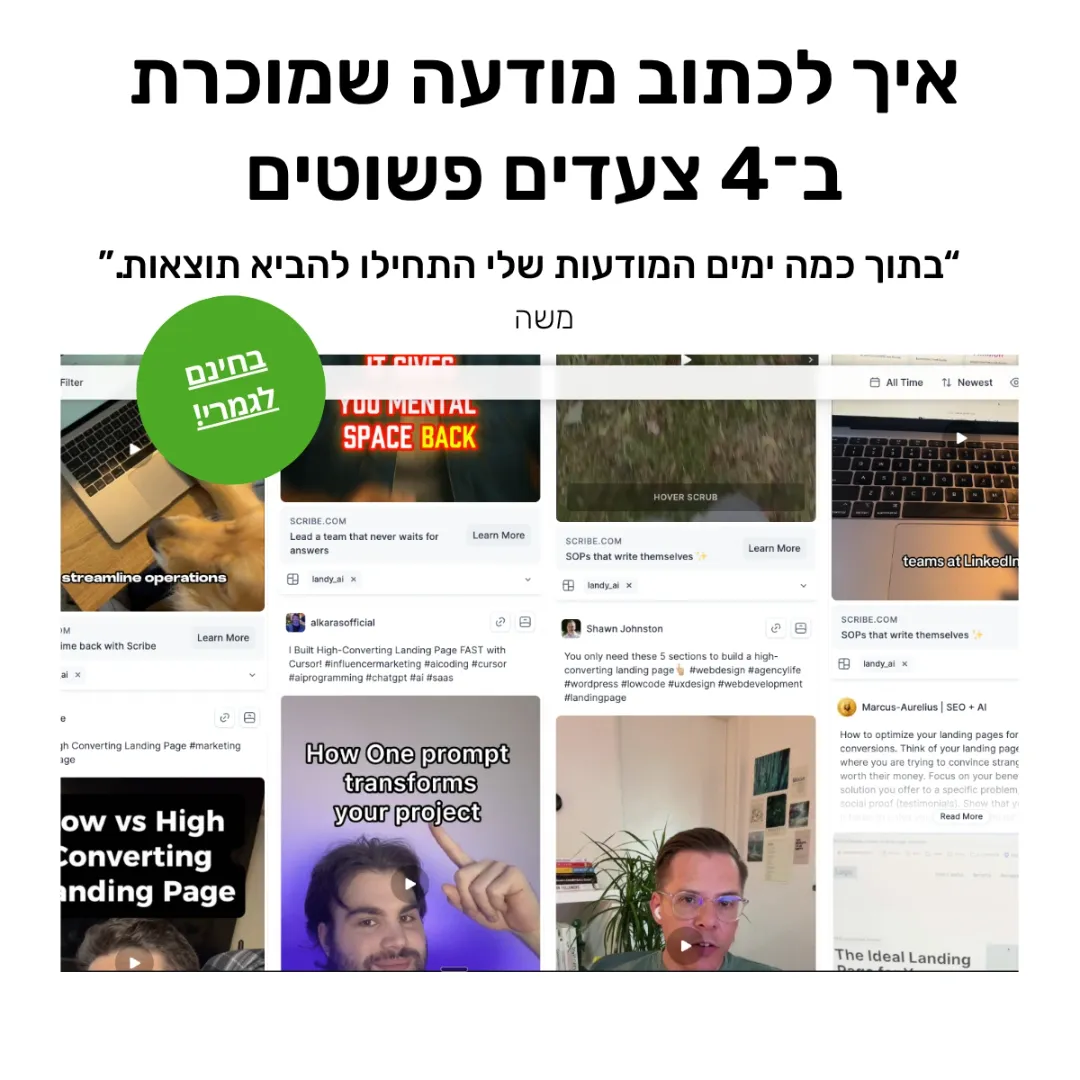 אנחנו מנצלים את זה ליצירת מגוון רחב של זוויות, מסרים ונכסים שמאפשרים למערכת “למצוא” את הלקוחות הנכונים ולהביא תוצאות אמיתיות – לא רק קליקים.